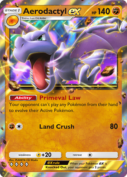 Not only does Aerodactly EX only require two Energies to perform an attack that does 80 damage, but it also has an incredibly unique ability. When on the field, your opponent cannot evolve their Active Pokémon.