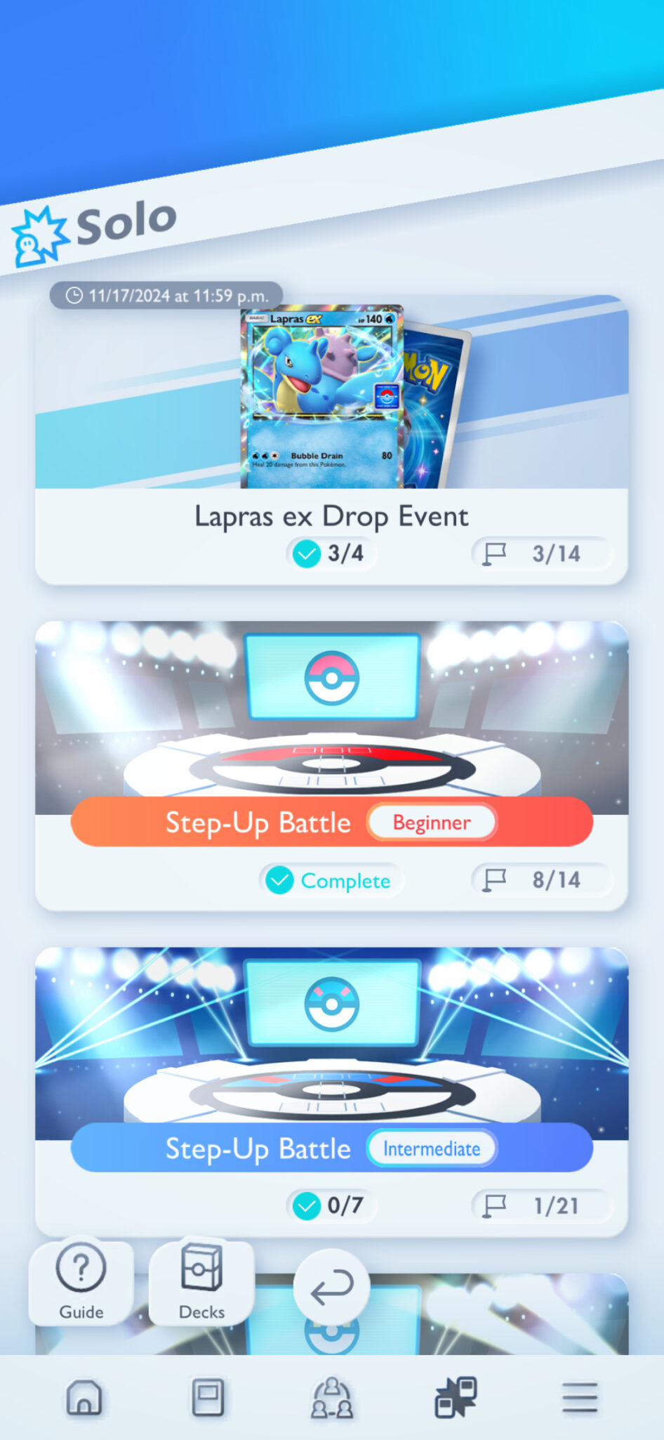 The Pokémon TCG Pocket Lapras EX event will end on November 17 at 11:59 p.m. So, you have until then to try and earn the Lapras EX card and any other prizes you are after.