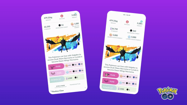 You will need a lot of resources to use fusion however. That means that these Pokémon are likely to be VERY powerful, to justify such a high cost. However, unlike Mega Evolution, this is not a temporary state. Fused Necrozma will remain in this form until their Trainer separates them. Separating will not cost any Fusion Energy or Pokémon Candy.