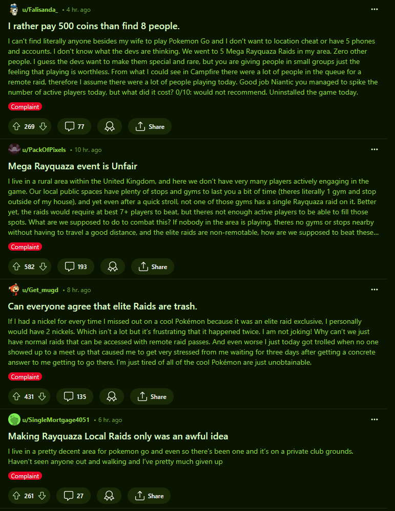 Pokémon GO players have taken to social media in droves to complain about the choice of Elite Raids for the return of Mega Rayquaza. This powerful Pokémon is one of the most popular in the game, and had not been seen in the game since Pokémon GO Fest 2023.
