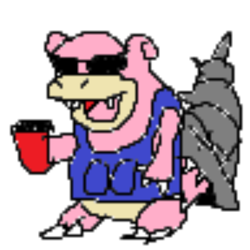 Starting us off is the Water Psychic defensive wall Slowbro. Although Slowbro made its debut in Generation 1, it was a rare find. However, players truly fell in love with the Pokémon in Generation 2 thanks to the Slowpoke Well. The April Fools’ Day Pokémon sprites has Slowbro becoming a true “Bro,” complete with shades, a red solo cup, and, of course, a tank top.