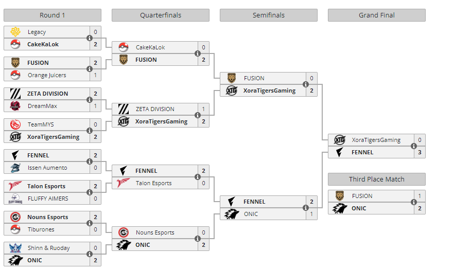 - Grand finals: FENNEL 3-0 XoraTigersGaming