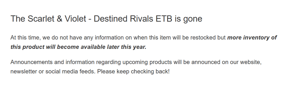 More Pokémon Centre Destined Rivals ETB's will "become avaliable later this year"