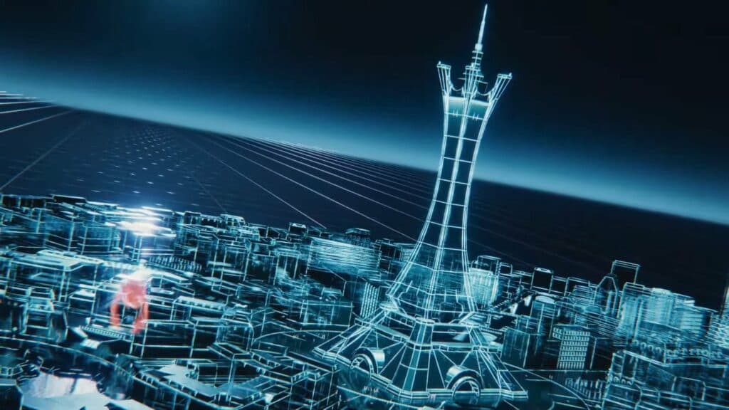 The Prism Tower is located directly in the middle, which serves as a power hub for the city. It sits in a massive courtyard, where many others walk around with their Pokémon.