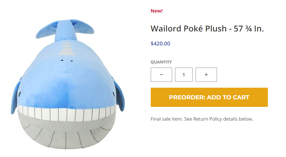 Need a $400 dollar mistake? Why not buy this Wailord Pokemon plush and be the envy of all the internet?