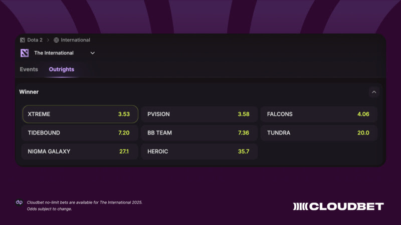 The International 2025 is on Cloudbet.