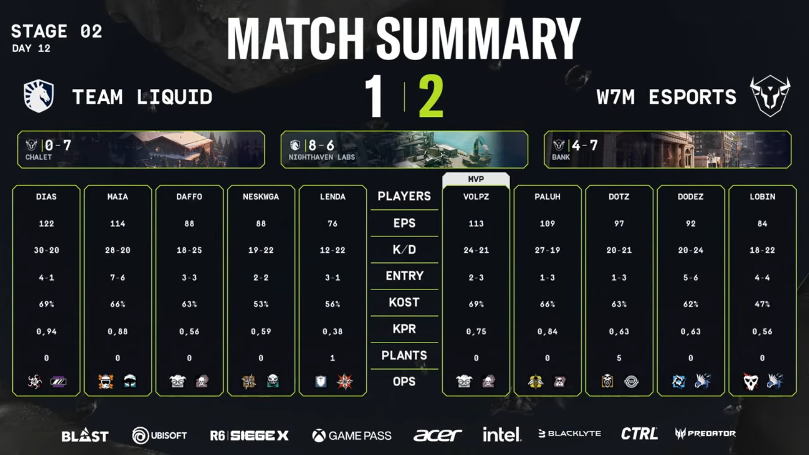 - w7m esports won over Team Liquid with a 2:1. Liquid lost map 1 with no rounds on their side but could recover on map 2. Still, it was w7m who delivered the final blow on Bank.