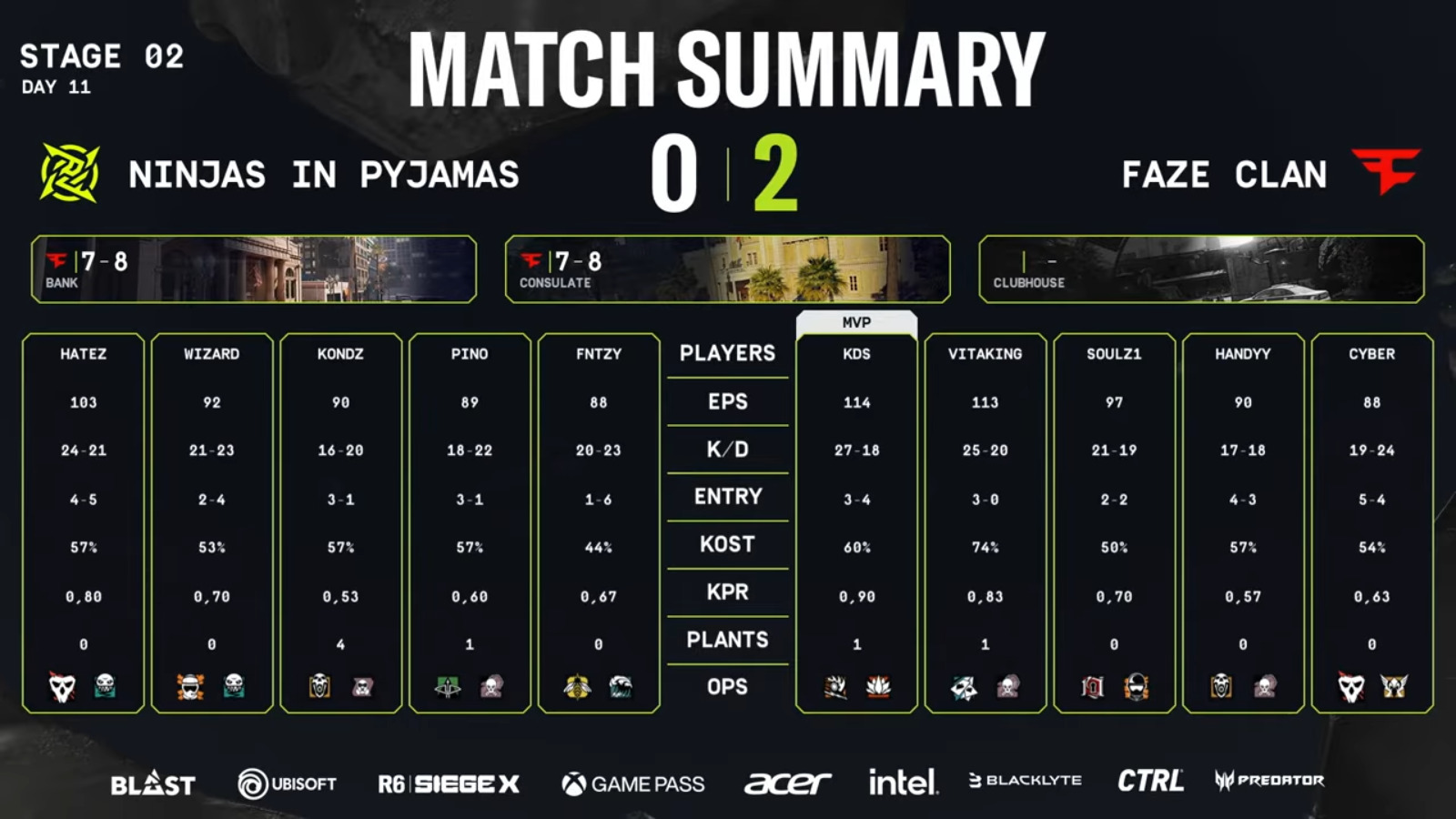 - FaZe Clan defeated Ninjas in Pyjamas with a 2:0. Both maps were extremely close, and FaZe won only in overtime.