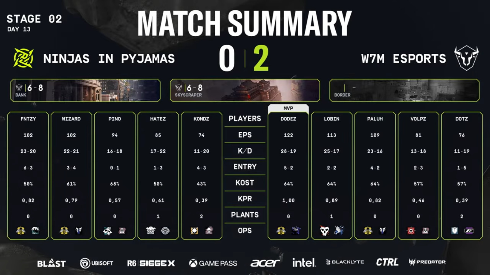 - w7m esports defeated Ninjas in Pyjamas with a 2:0. Both maps were extremely close, and still, NiP got eliminated.