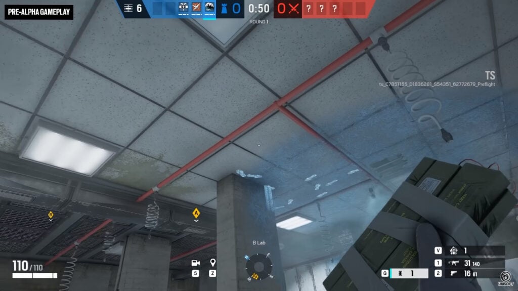 This is what the enemy’s footsteps look like on the ceiling (Image via Ubisoft on YouTube)