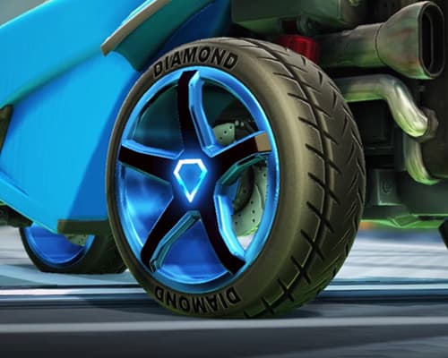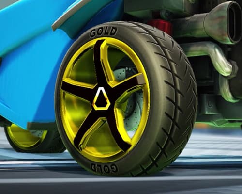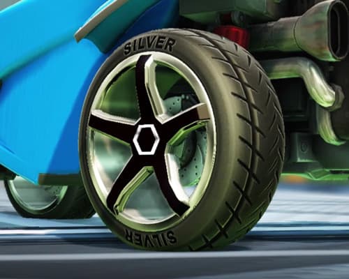 The wheels in the seasonal reward have colored silhouettes and subtle ranks written along the sidewall. Let's look at the Rocket League Season 9 rewards: