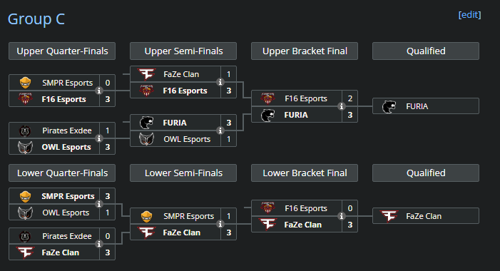 FURIA Esports started their run in Group C against OWL Esports with a 3:1 score. Moving forward, they took down F16 Esports with a 3:2 score in a best-of-five match. This puts them in first place in Group C.
