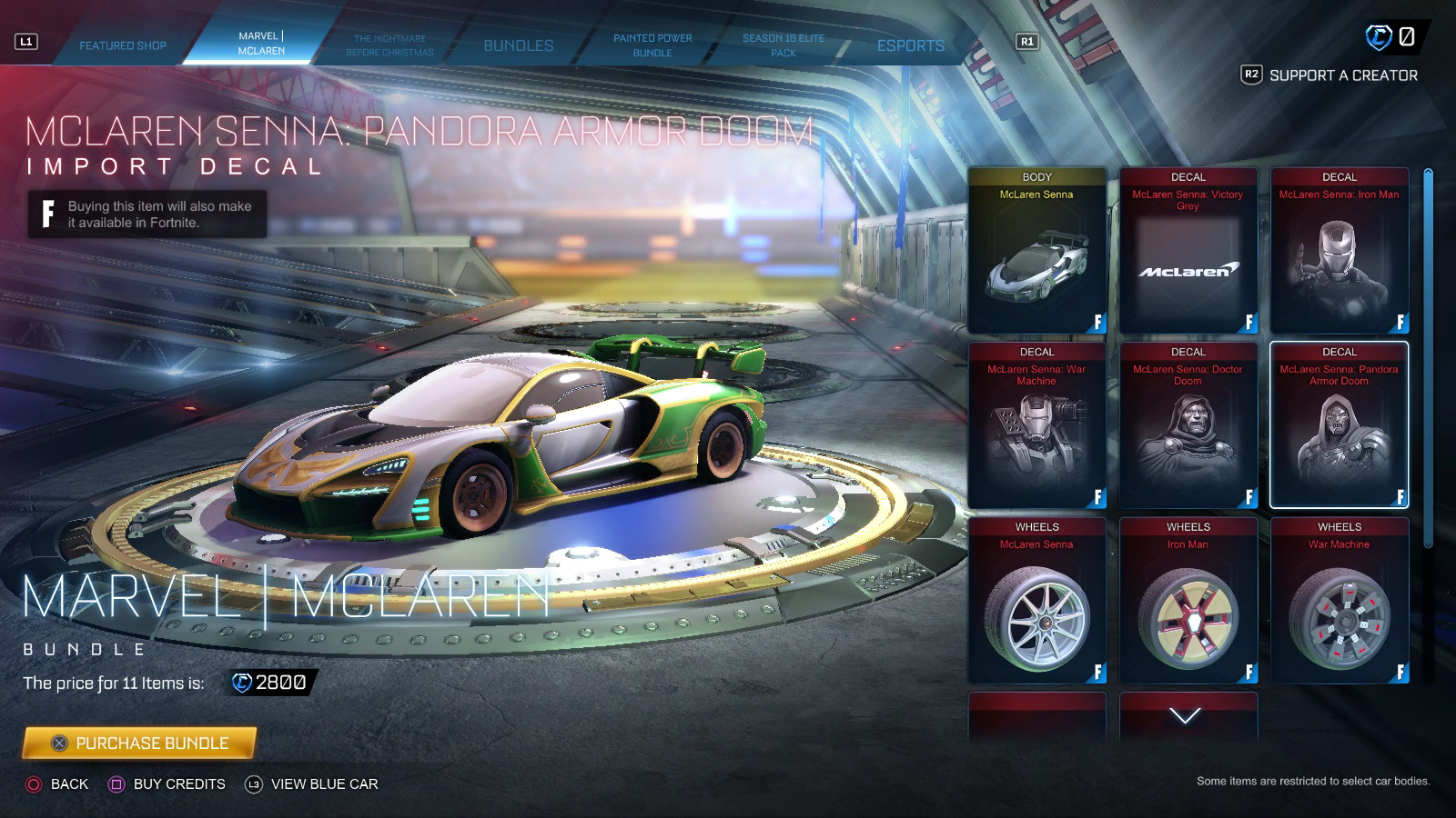 Another option is to unlock the Fortnite McLaren Senna, so the car (and the whole bundle) will be available in Rocket League and Rocket Racing as well.