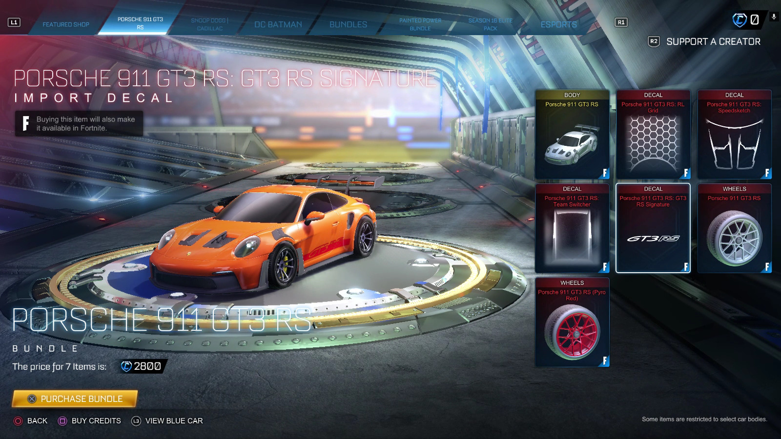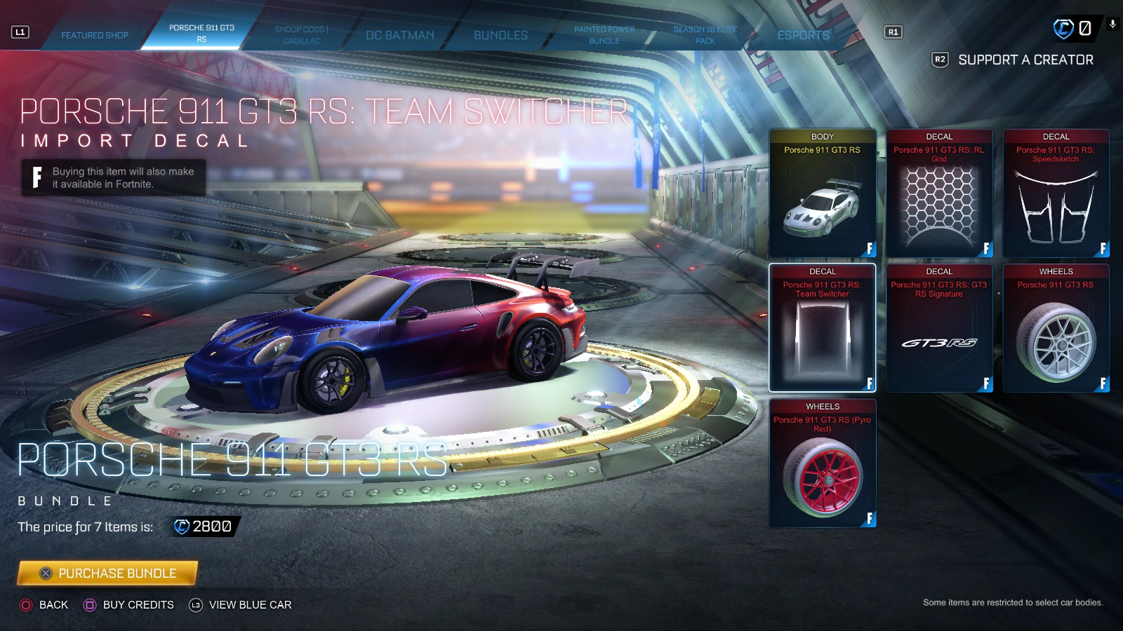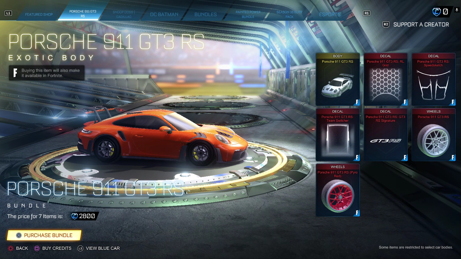 - Buy the Rocket League bundle with the Porsche 911 GT3 RS for 2,800 Credits.