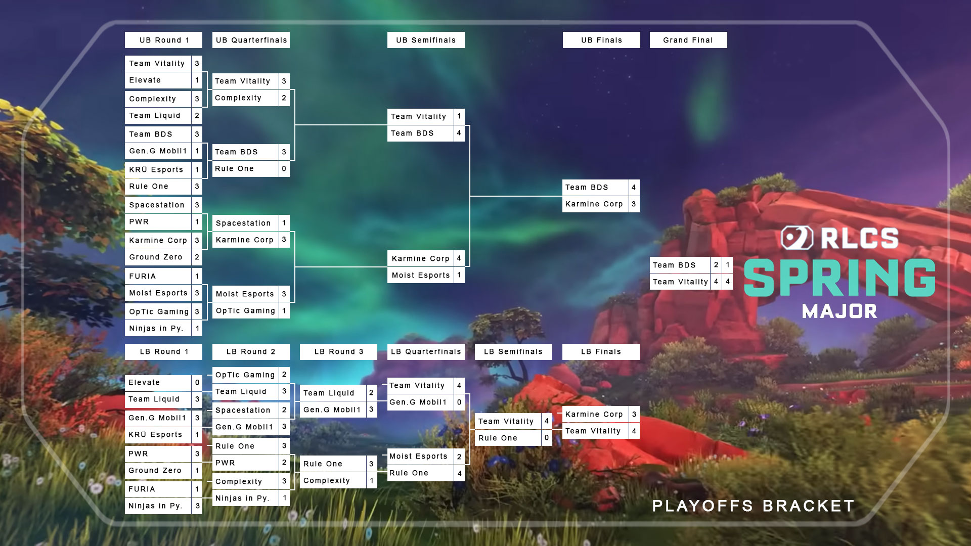 - Team Vitality, Team BDS, Karmine Corp, and Moist Esports secure top 6 in the RLCS Spring Major.