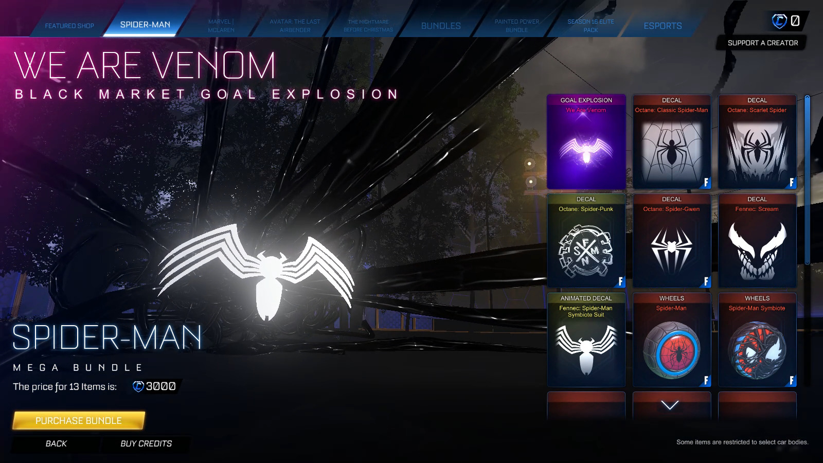 What an excellent way to celebrate Halloween in Rocket League! The Spider-Man bundle is an awesome addition to any game collection. The villain items are free.