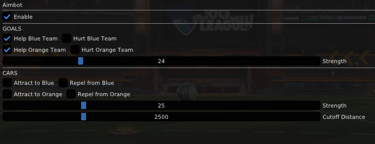 Aimbot is a classic cheat in the gaming world where players use it to help with their aim. In the right environment, the tool can prove to be an effective training tool. In Rocket League, the goal is the goalpost itself. Aimbot plugin gives you options on giving the aim accuracy advantage to either the blue team or the orange team. The plugin can also be used to give a disadvantage of aim accuracy, making it harder to score a goal.