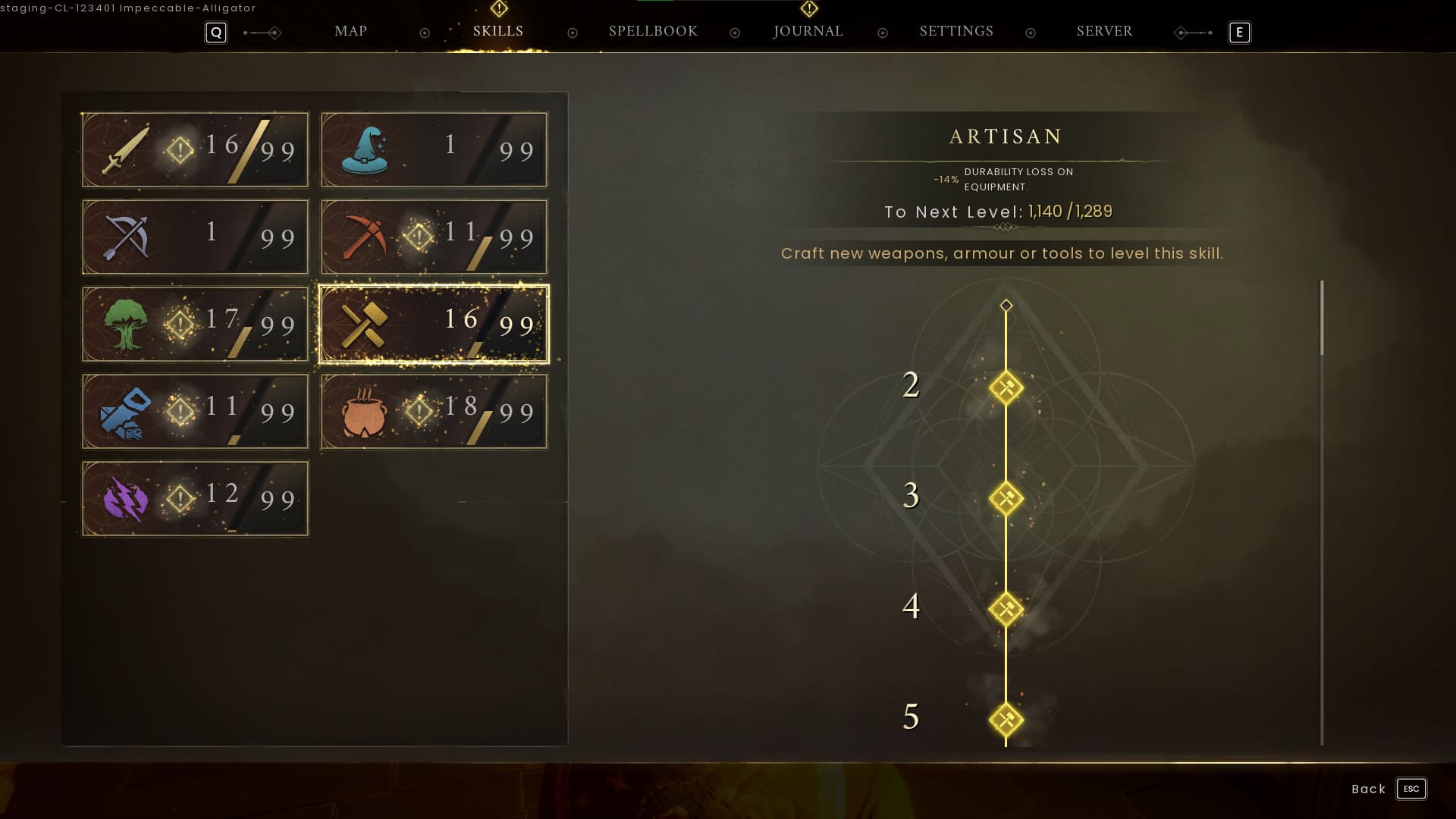 The third skill we feel you should level up first in RuneScape: Dragonwilds is the Artisan skill. Craft weapons, armor, and other items to level this skill up. The penalty reduction for higher levels here gives you -1% Durability Loss on all equipment.