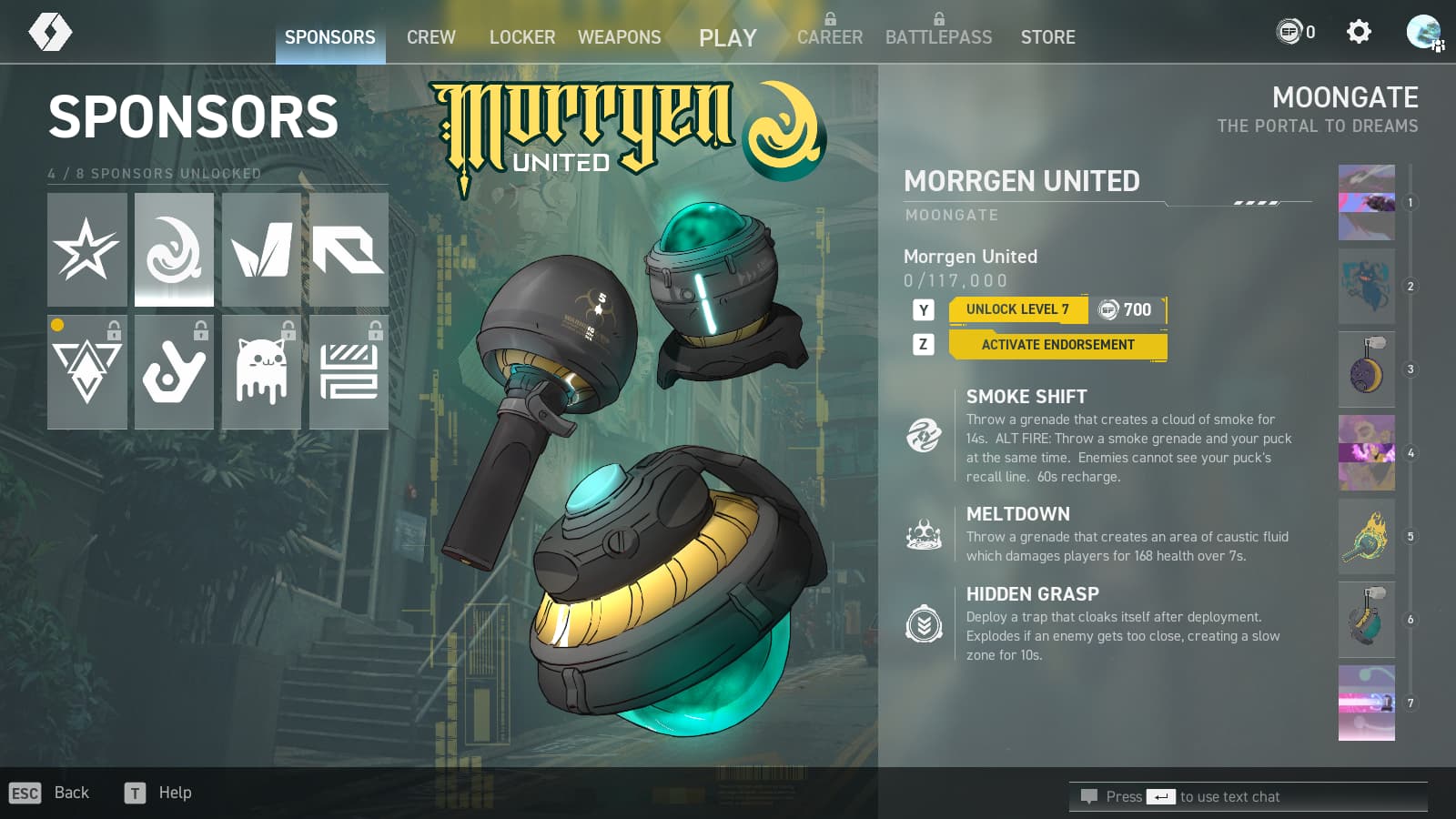 You can do this by spending 1,000 Spectre Points to obtain them right away, or you can activate their Endorsements. Pick one to start an Endorsement and once you earn enough XP from playing, you’ll unlock that specific Sponsor.