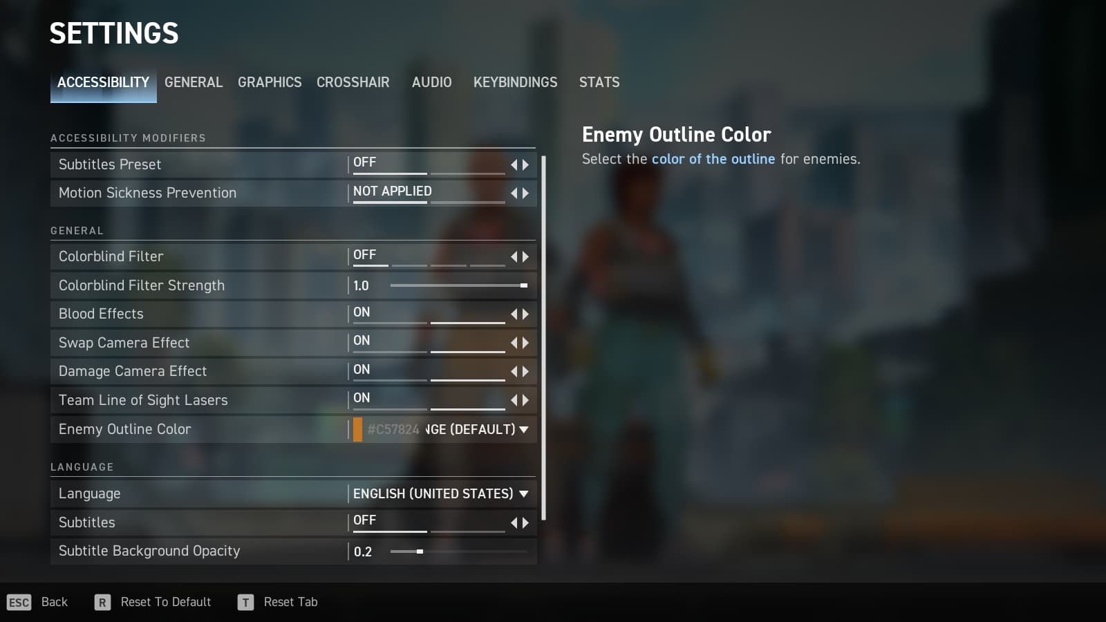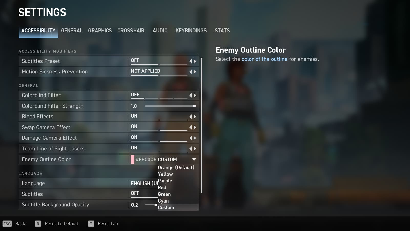- Look at the last option under General to find Enemy Outline Color