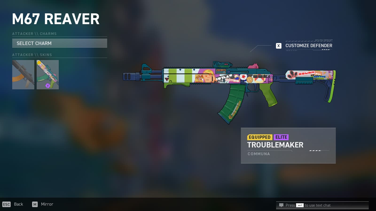 There’s an option to press M and mirror it to the Defender side, so you can have different skins when you attack and defend, or select the same ones. Do that and you’ll have the Troublemaker Reaver skin equipped, ready to take on the enemy team in Spectre Divide.