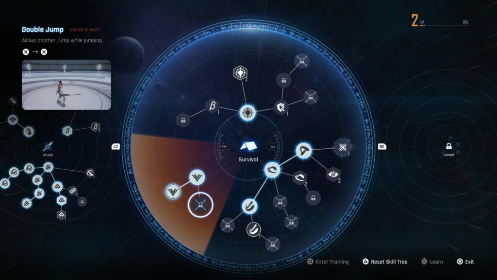 This skill is useful during your Stellar Blade journey. During our experience, a single jump with a dash sometimes isn’t enough to get over those wide gaps or wall-running sequences. The Double Jump makes it much easier to navigate the tough terrain, ensuring you won’t have to return back to a camp.