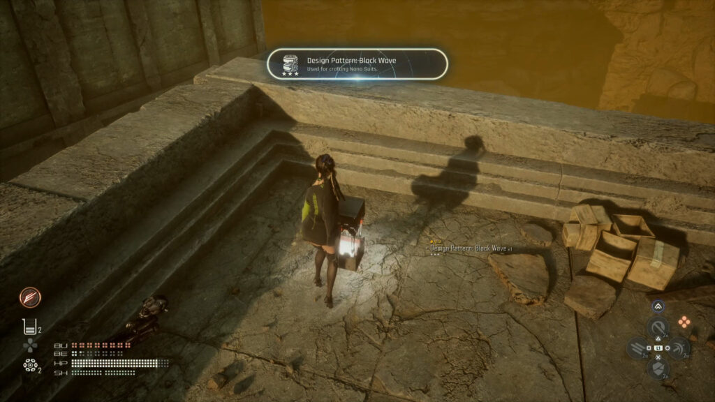 - Open the box atop the broken structure containing the Black Wave outfit in Stellar Blade.