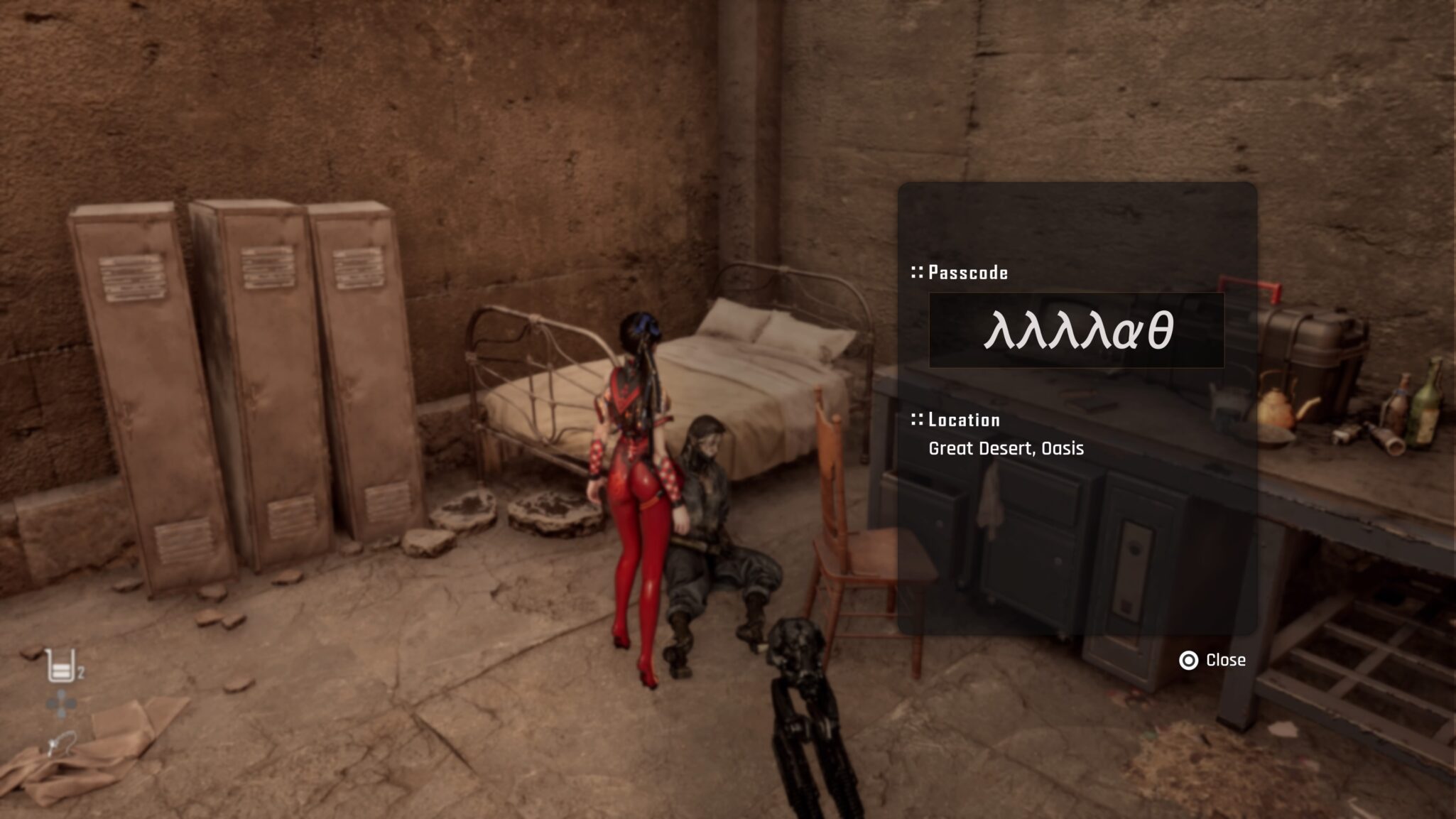 - Descend the ladder, interact with the dead body, and retrieve the code