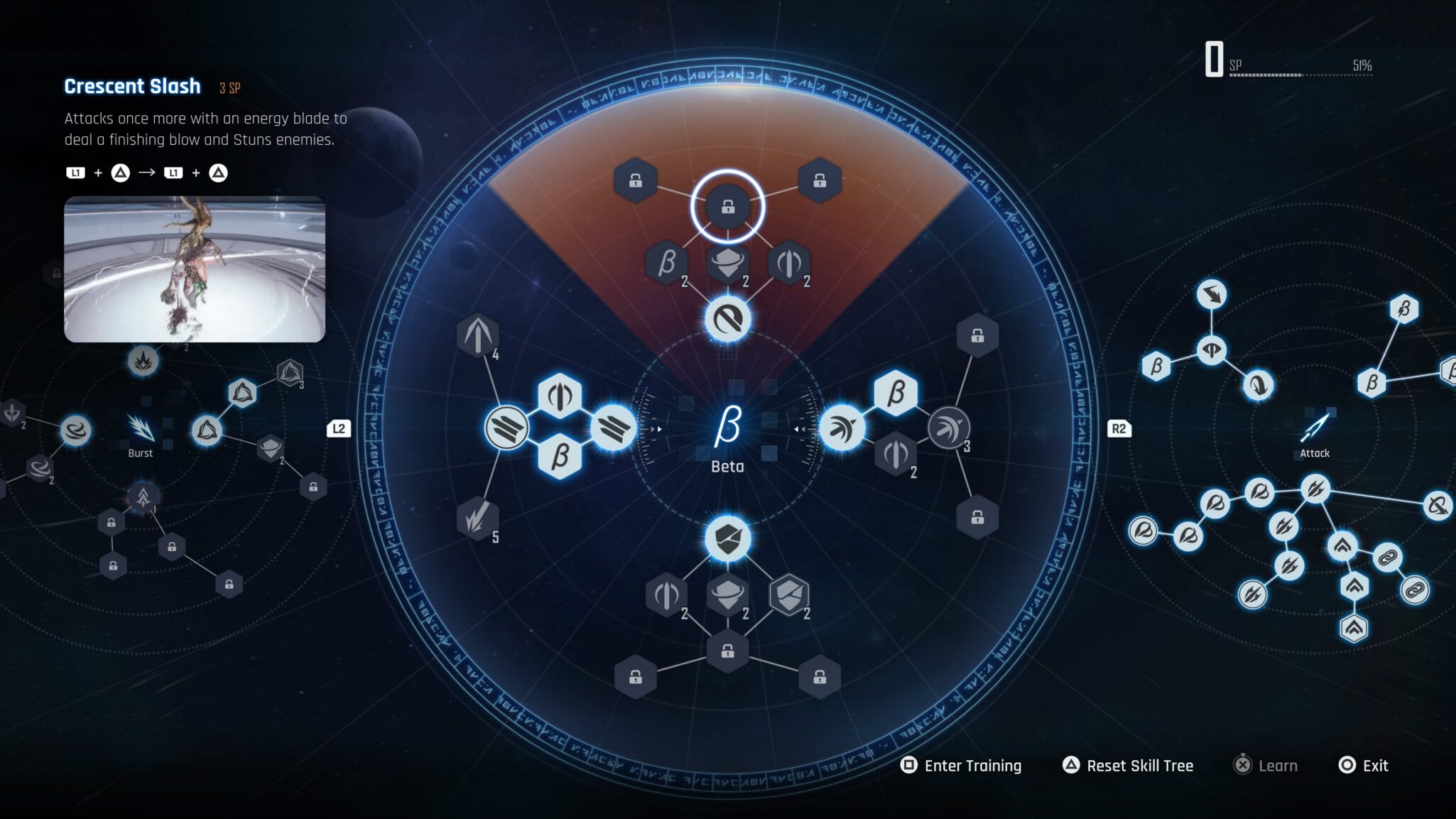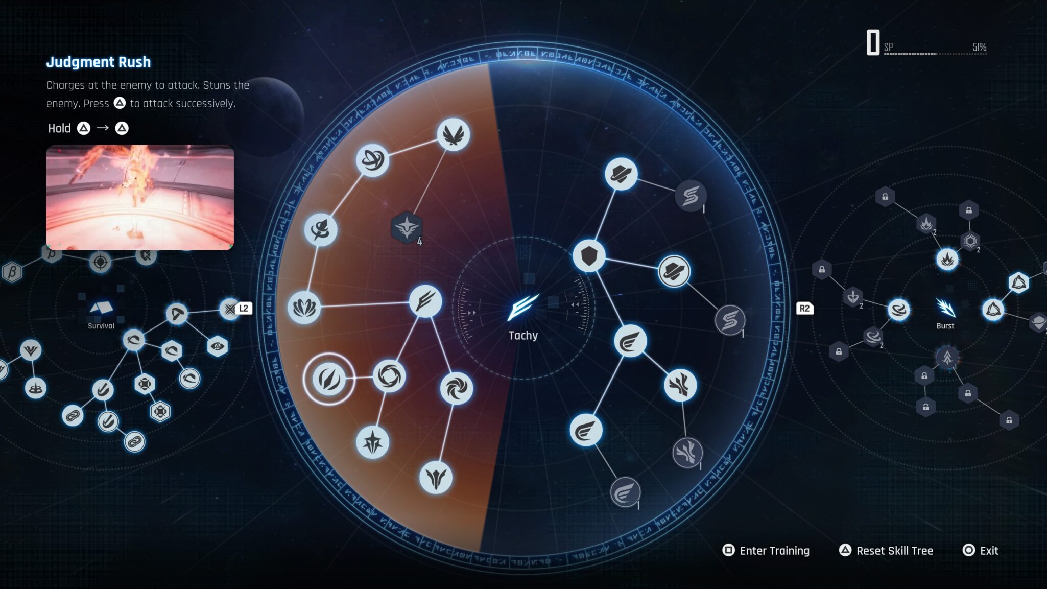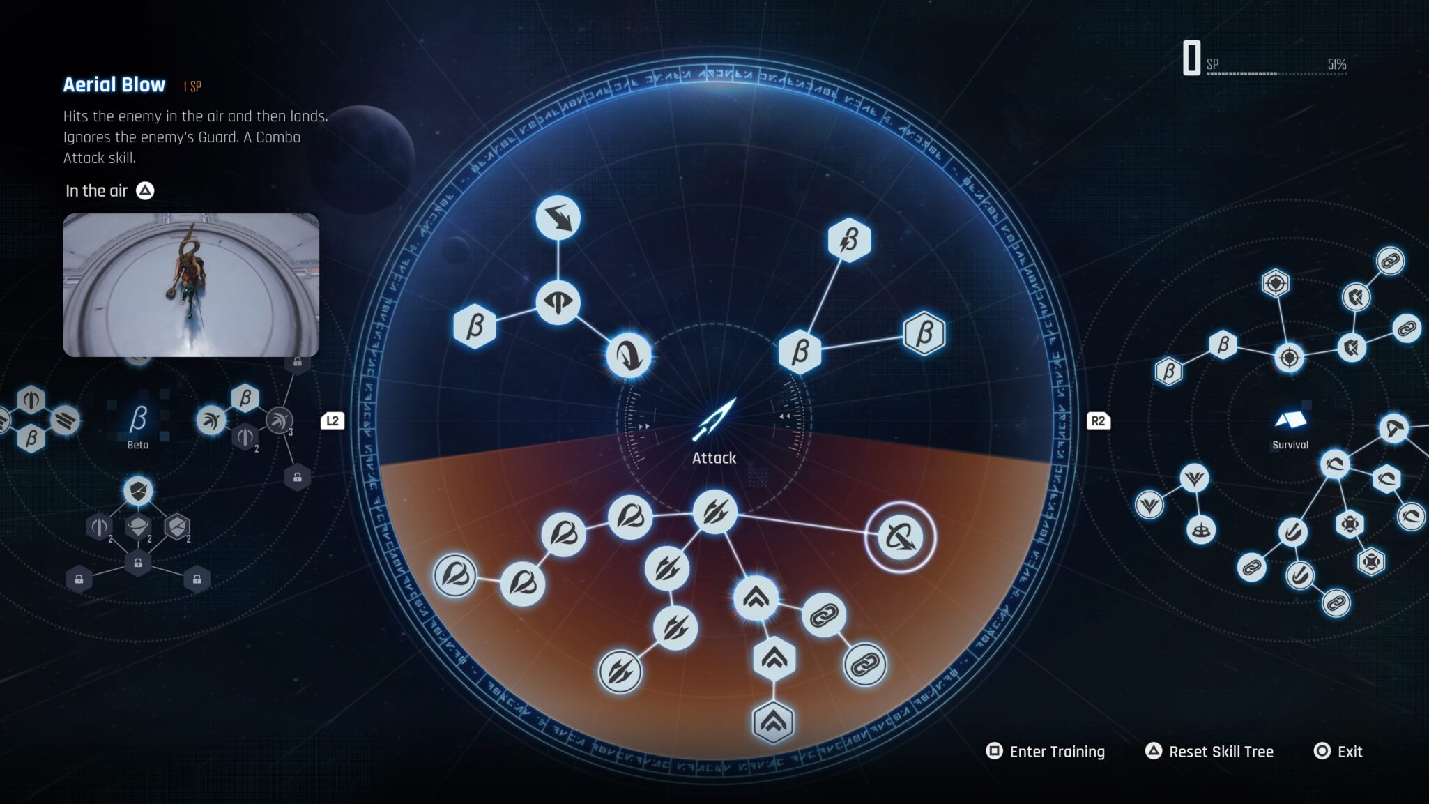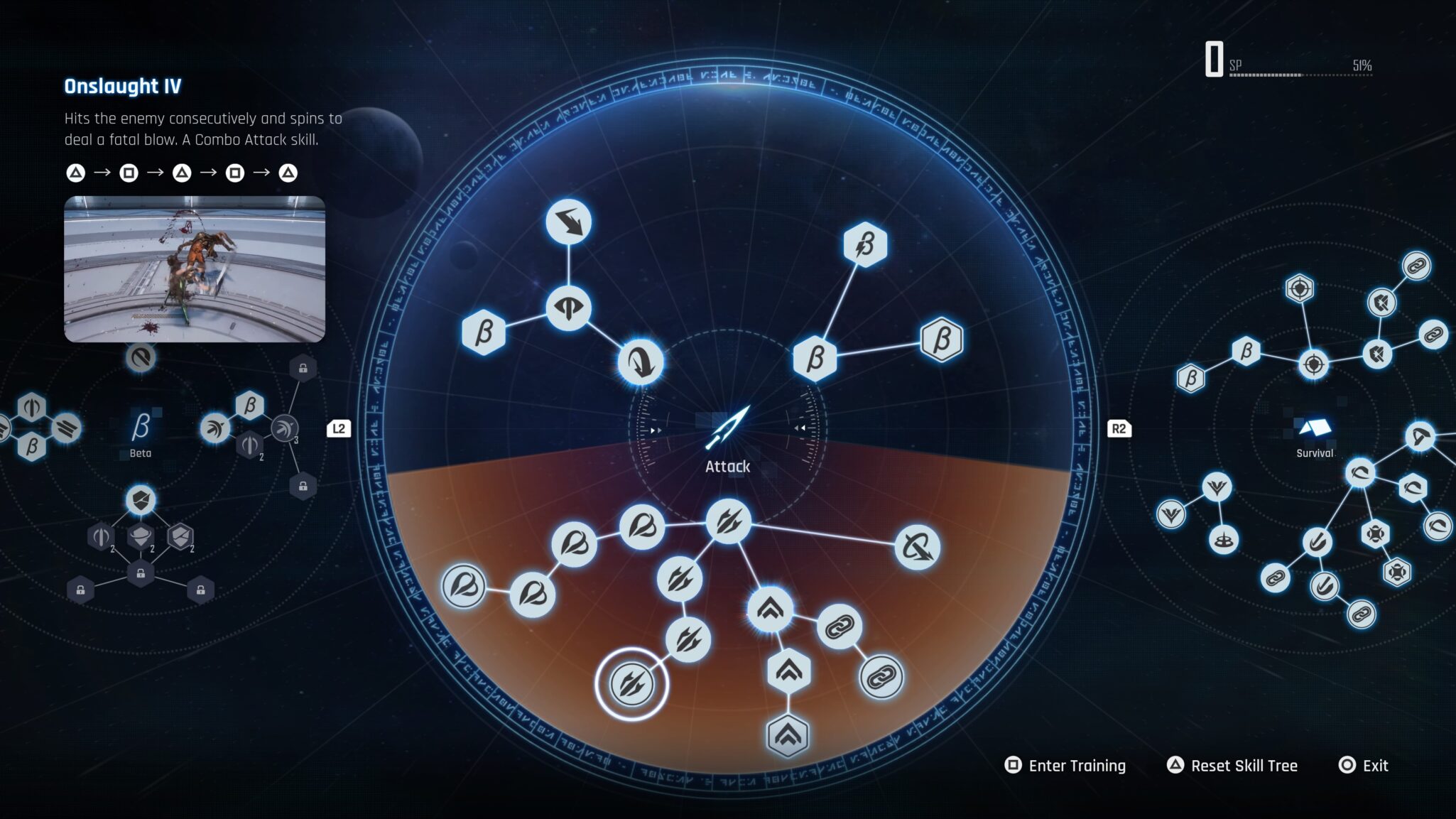 There are multiple Skill Trees in Stellar Blade. You’ve got your basic attack functions, survival that deals with health and dodging, then skill trees for the different special attack methods EVE can use in the game.