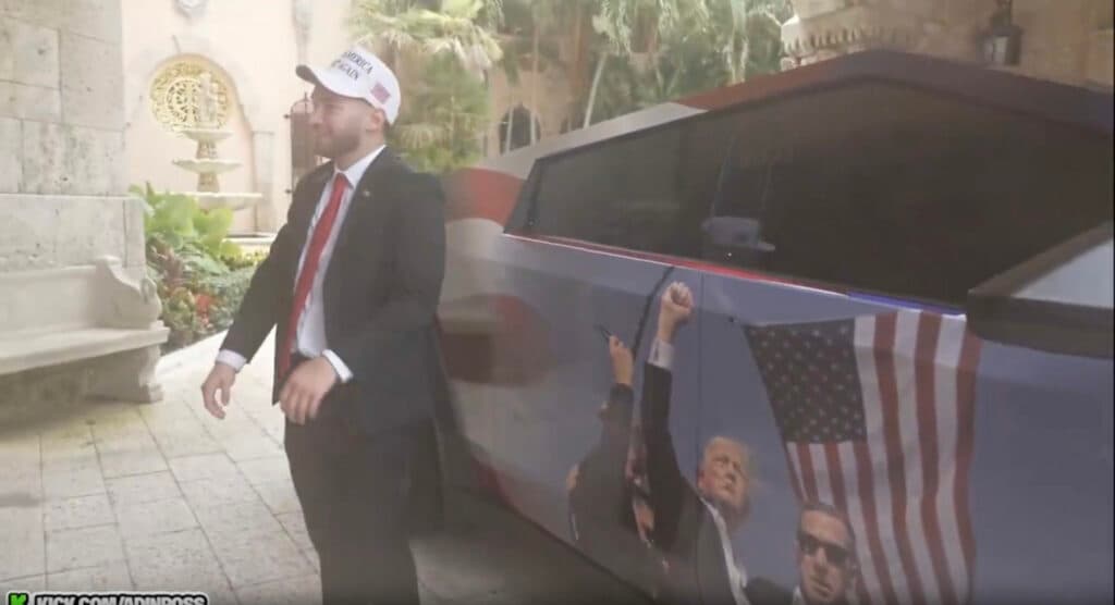 Adin Ross gives Donald Trump Cybertruck with famous photo on it