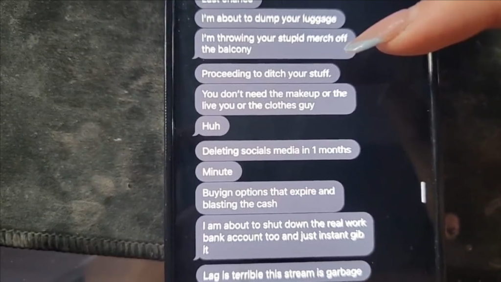 The text messages detail threats to financially ruin Amouranth. These include shutting down her bank accounts, both her personal and business ones, including her content agency Real Work. Additional, he allegedly threatened to dump all her money into crypto and leave her with “just $1 million.”