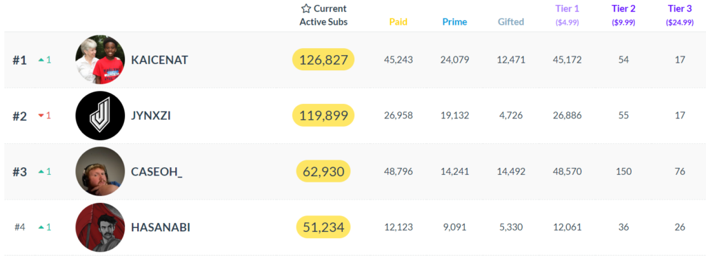 With the viral broadcast, Kai Cenat not only garnered high viewership but also a wave of new subscribers. His livestream with Kevin Hart resulted in 126,827 total subscribers on Twitch, climbing into the #1 spot. He overtakes Jynxzi who now has 119,899 subs.