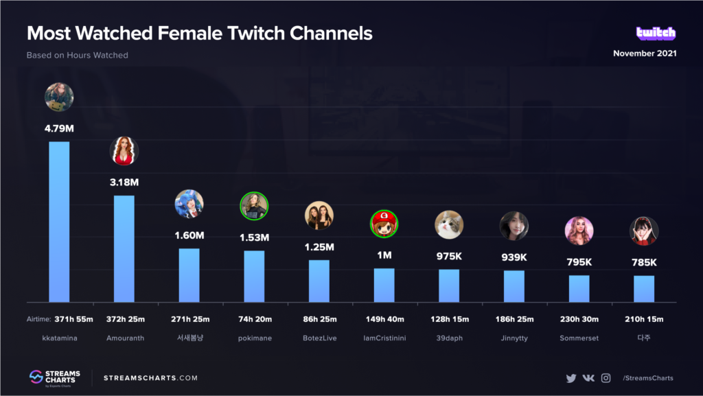 Top Female Twitch streamers (November 2021)