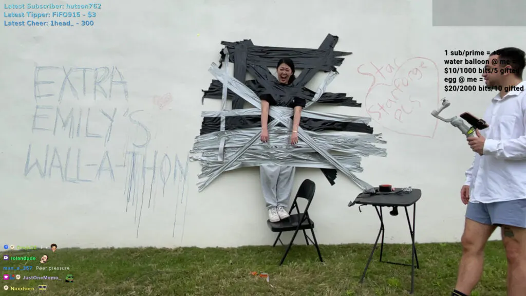 ExtraEmily taped herself to a wall for 13 hours in a recent subathon