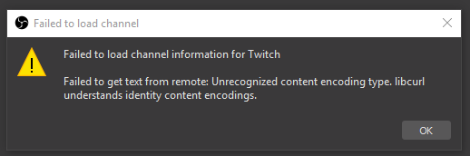 The OBS error message says: “Failed to load channel information for Twitch.” This again points toward the issue being a behind-the-scenes server issue at Twitch.