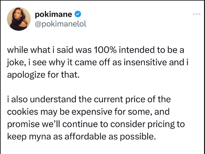 However, compared to the rest of the market, Pokimane’s Myna cookies are priced incredibly high. The standard package of Oreo cookies averages a price of four to five dollars USD. Additionally, that package contains 18 oz of product. Compared to Myna’s 4 oz. for seven dollars–in addition to only being purchasable online–and the math is simple, even for “broke boys.”