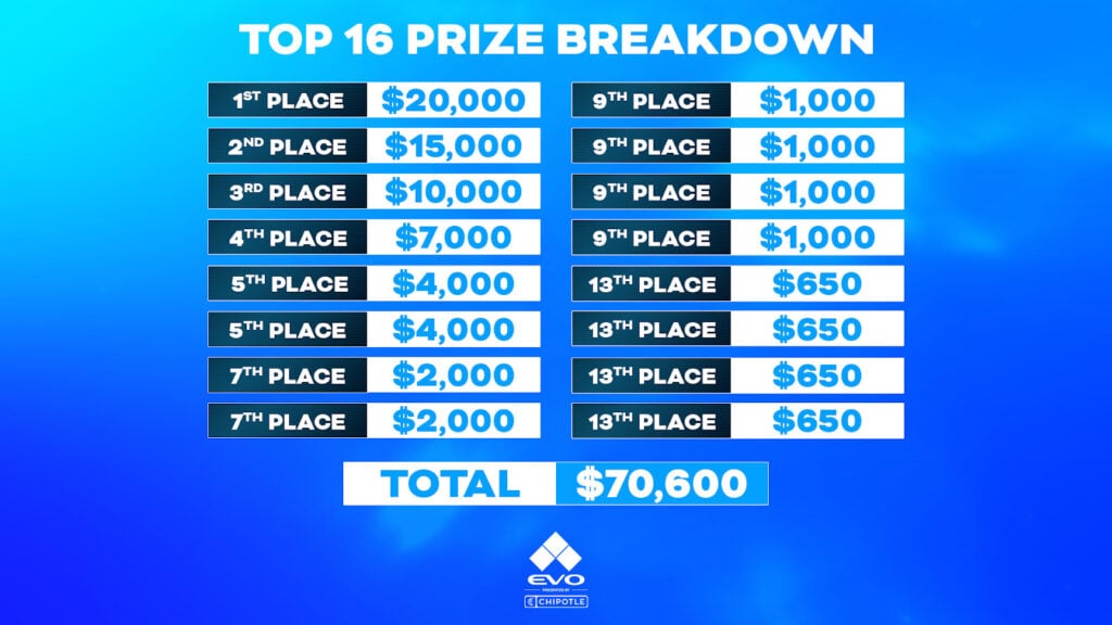 The EVO prize pool breakdown
