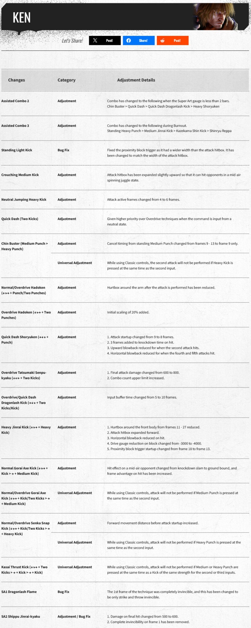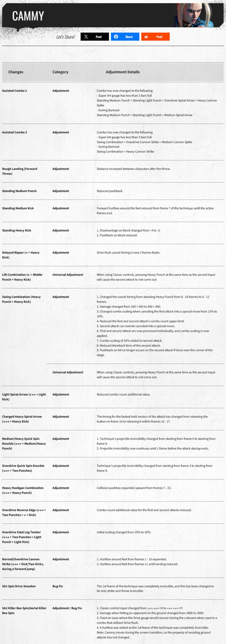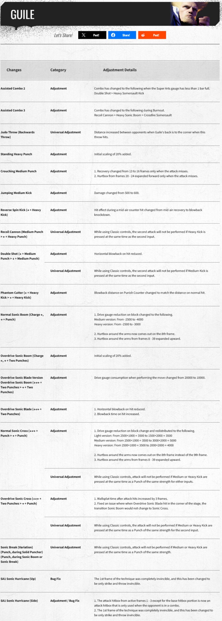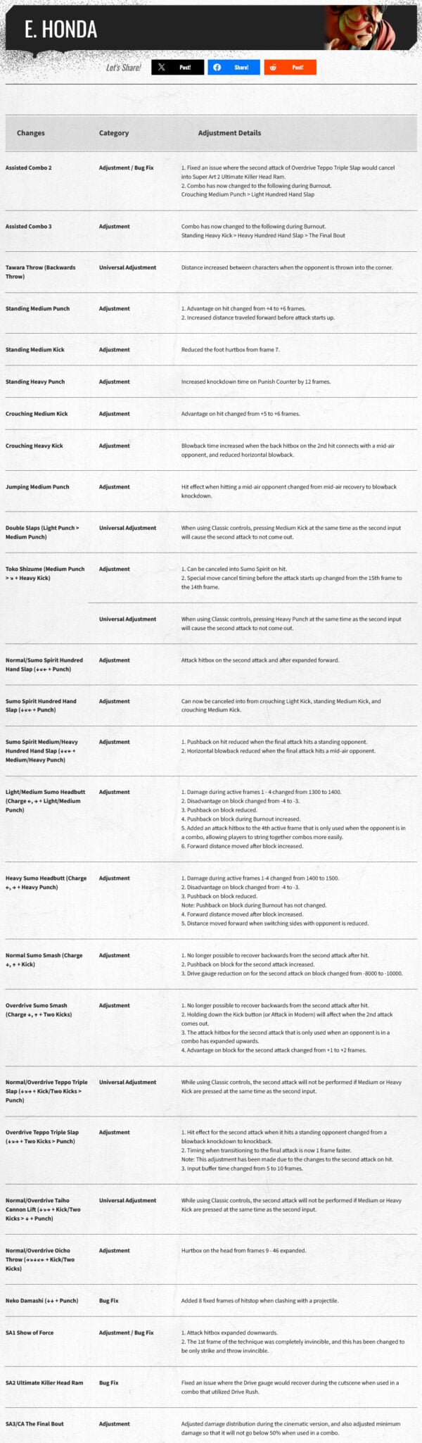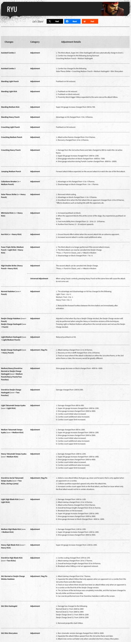 Here we have the general Battle Change Listforr Street Fighter 6 Ver. 202405: