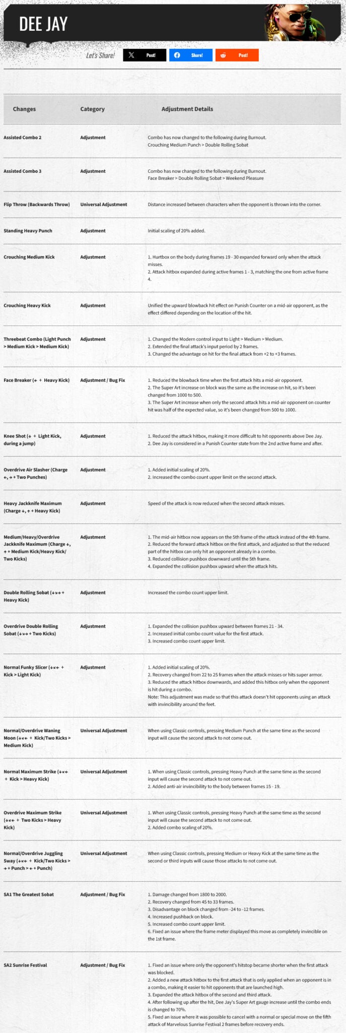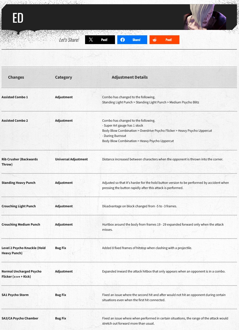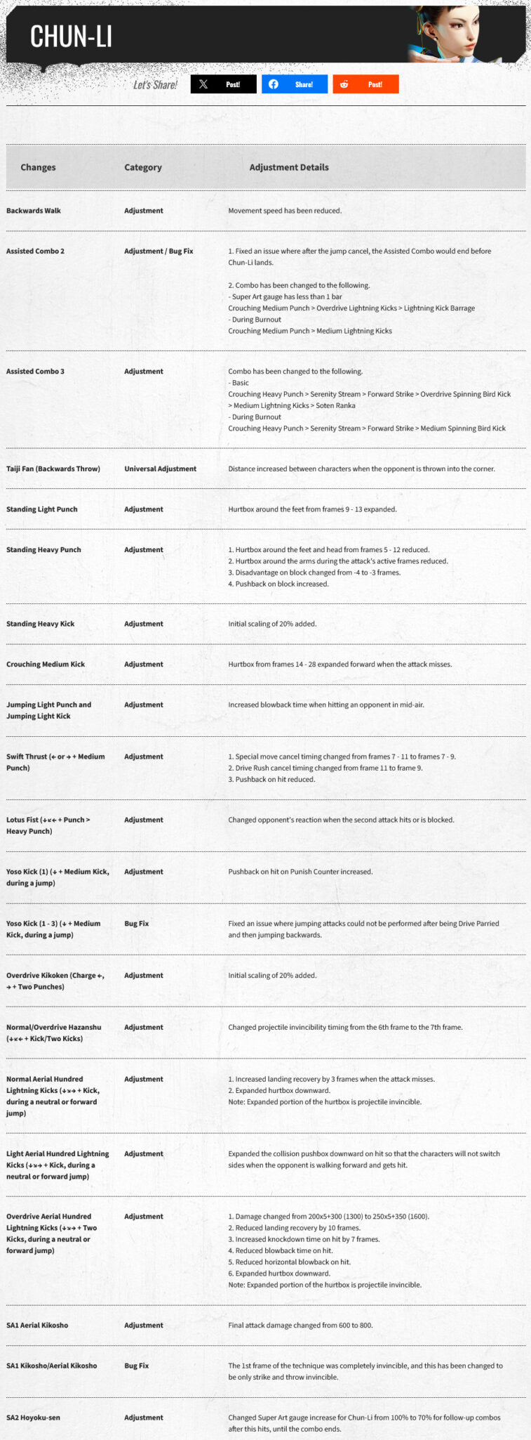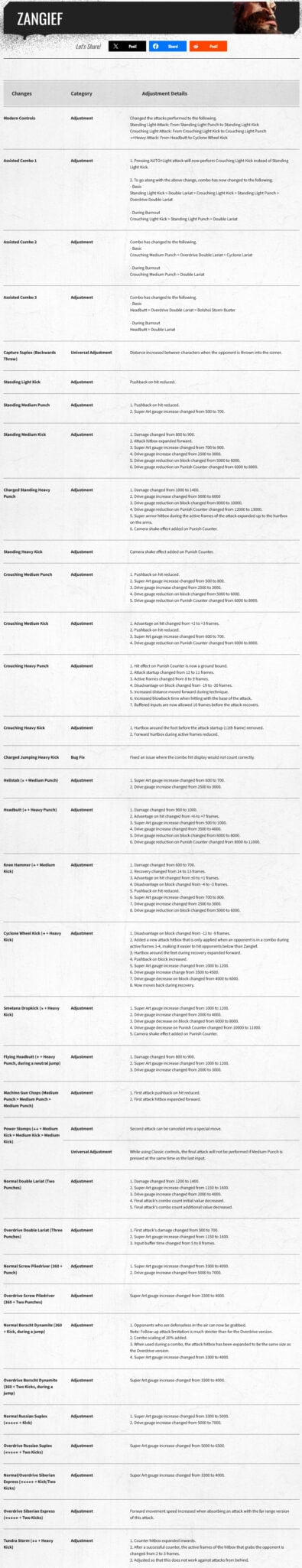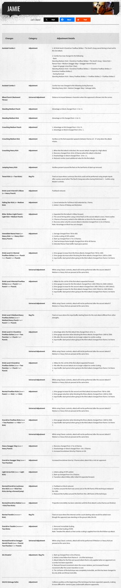 Here we have the general Battle Change Listforr Street Fighter 6 Ver. 202405: