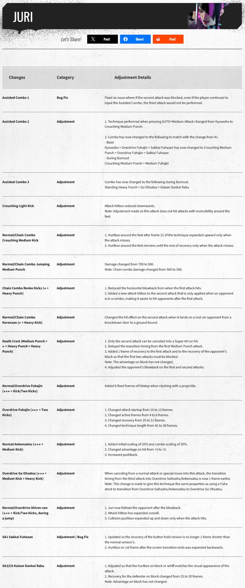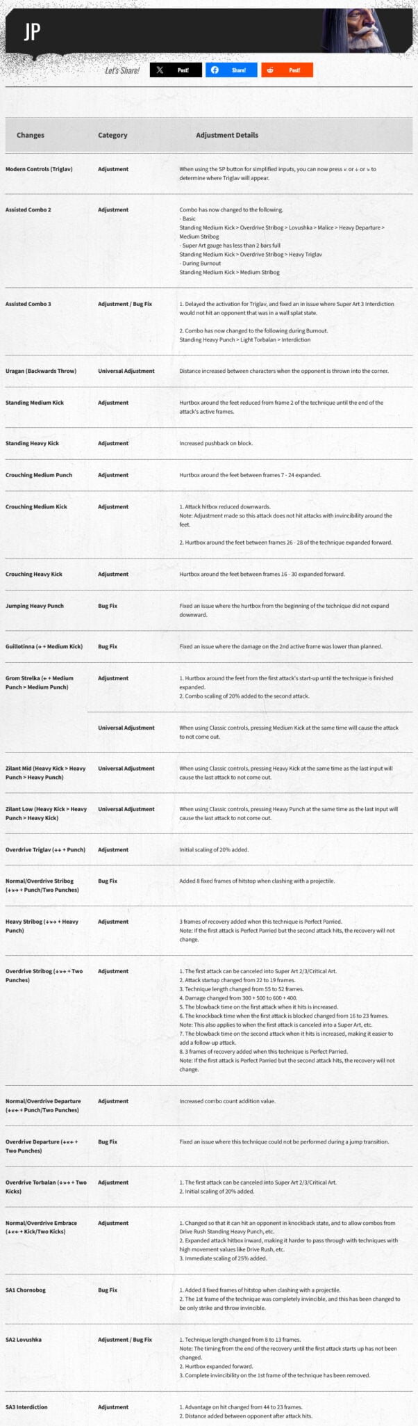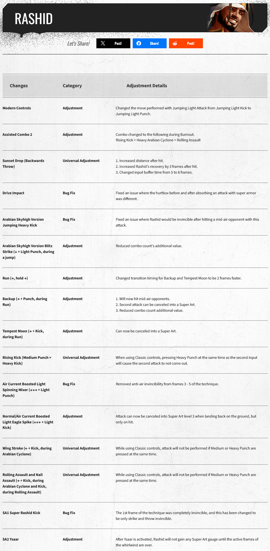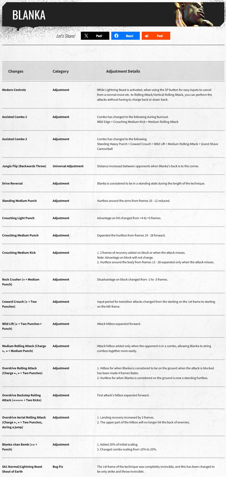 Here we have the general Battle Change Listforr Street Fighter 6 Ver. 202405: