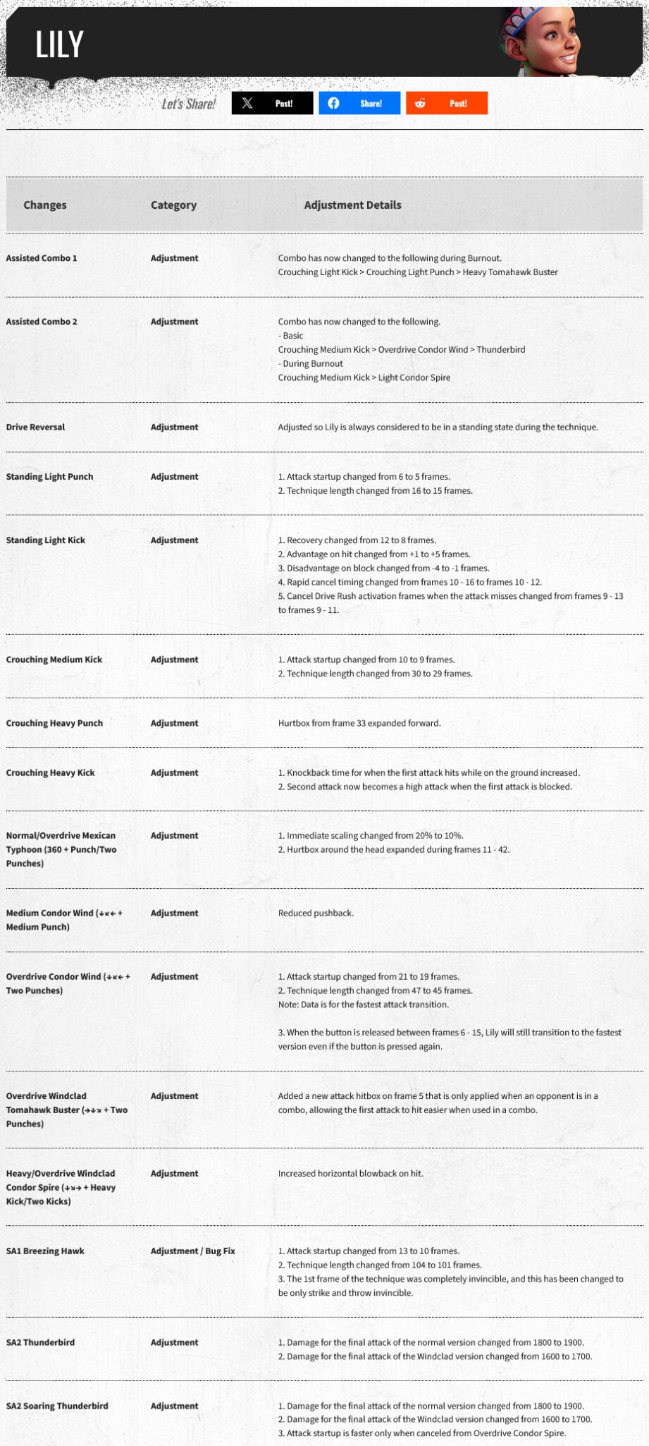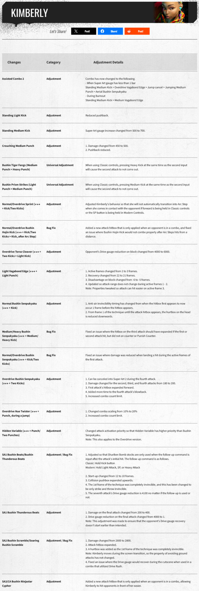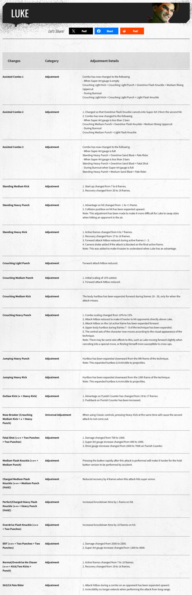 In the gallery below, you will find Battle Balance adjustments for Luke, Jamie, Manon, Kimberly, and Marisa.