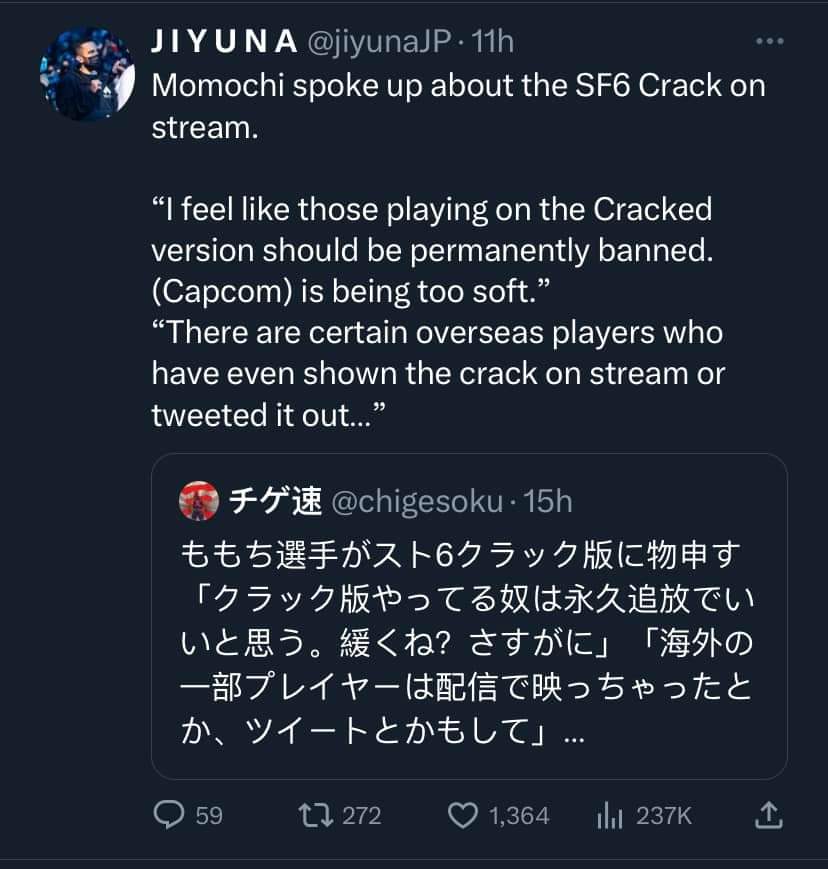 The biggest name to speak up about the Street Fighter 6 beta crack was Japanese FGC legend Momochi. Speaking on his stream, he felt that Capcom wasn’t doing enough to limit the unfair advantage a number of pro FGC players were clearly getting in the race to one million dollars.