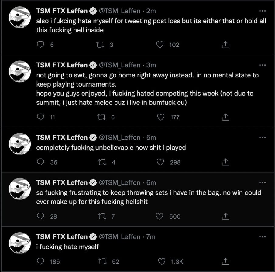 Leffen was extremely dismayed at his performance in the Los Angeles-based tournament, and took to Twitter to express his emotions.