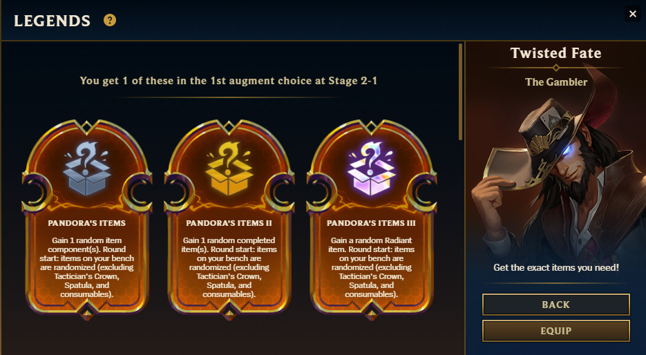 The Twisted Fate legend has been one of best TFT legends for a few patches now. While Urf has become increasingly popular, Twisted Fate still has its place. When picking this legend, you will almost always choose this augment and force a certain direction by saving your item bench for the best items possible on your carry. The pros and cons to this strategy are clear.