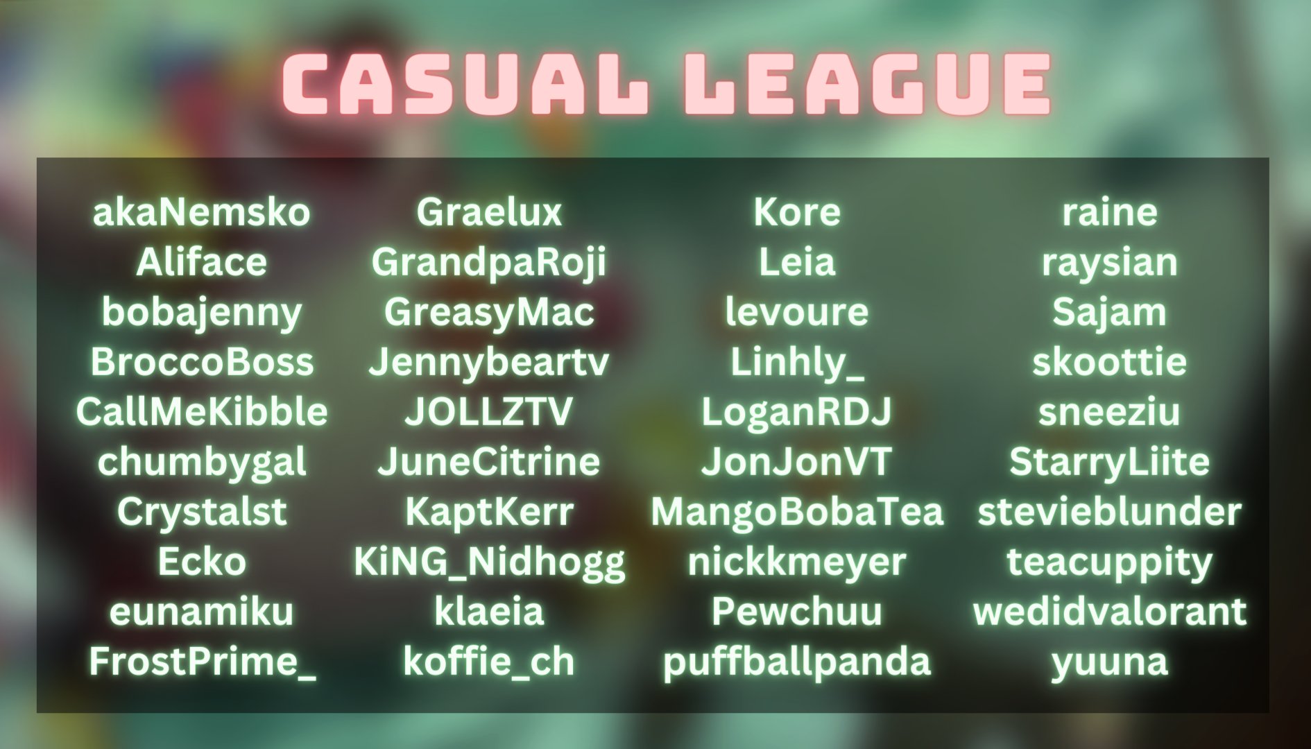 - Casual League.