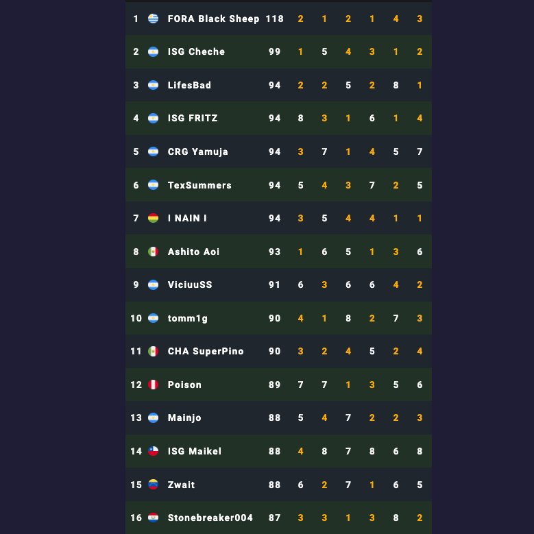 Below are the sixteen players that qualified to the LATAM Playoffs: