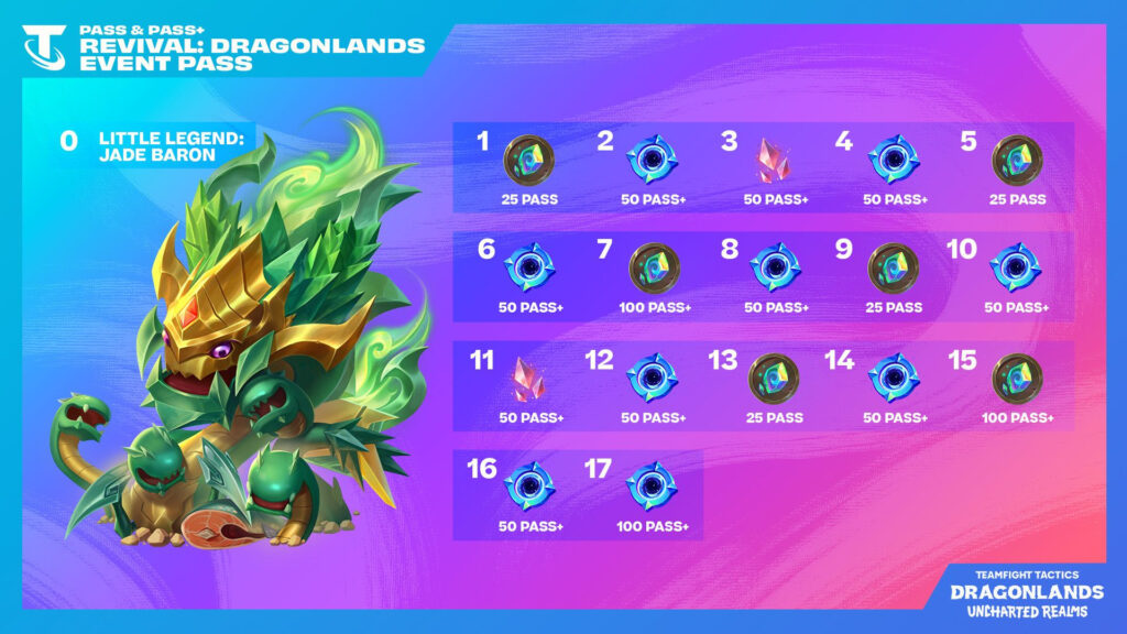 In terms of the new TFT Set Revival event pass, it will let players unlock 500 Treasure Tokens, 200 Realm Crystals, and 100 Star Shards. Those with Pass+ will be able to get the Jade Baron little legend as well.