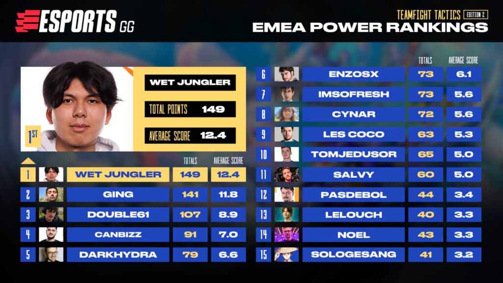 The Inaugural TFT EMEA Power Rankings are here in collaboration with the DTIYDK Podcast! For this edition of the Power Rankings, we have a Top 15 list with the best players from EMEA. This edition sets the tone for future rankings and includes some big names. This edition of the Power Ranking will include KevinParker and Noel as guests.