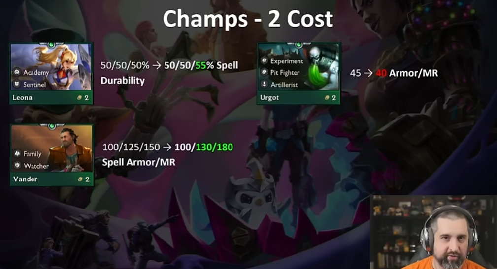 | 2 | Urgot | 45 → 40 Armor/MR. |