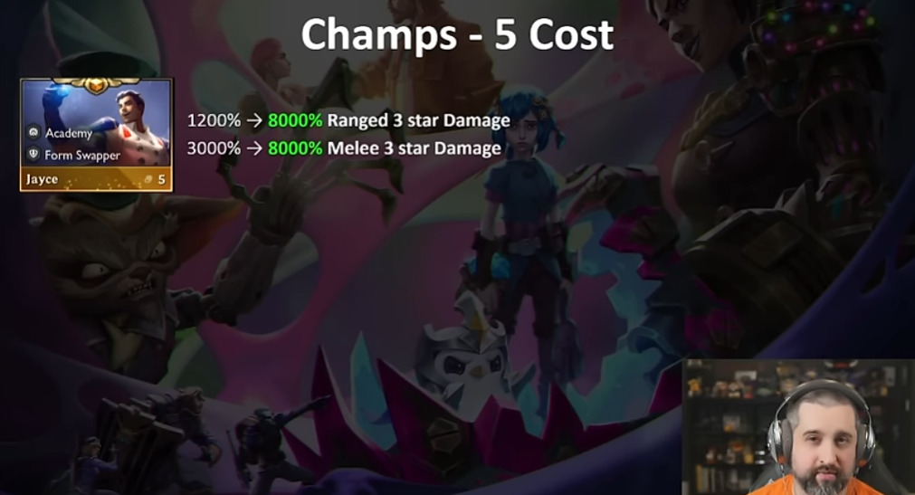 | 5 | Jayce | 1200% → 8000% Ranged 3 Star Damage. 3000% → 8000% Melee 3 Star Damage. |